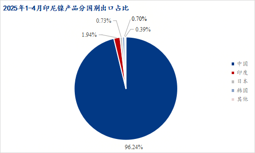 據(jù)印尼貿(mào)易部最新信息,2025年4月份印尼鎳產(chǎn)品出口總計(jì)1112692實(shí)物噸(下同),其中NPI912007噸,F(xiàn)eNi19820噸,高冰鎳26979噸,硫酸鎳14560噸,MHP133001噸,電解鎳0噸。