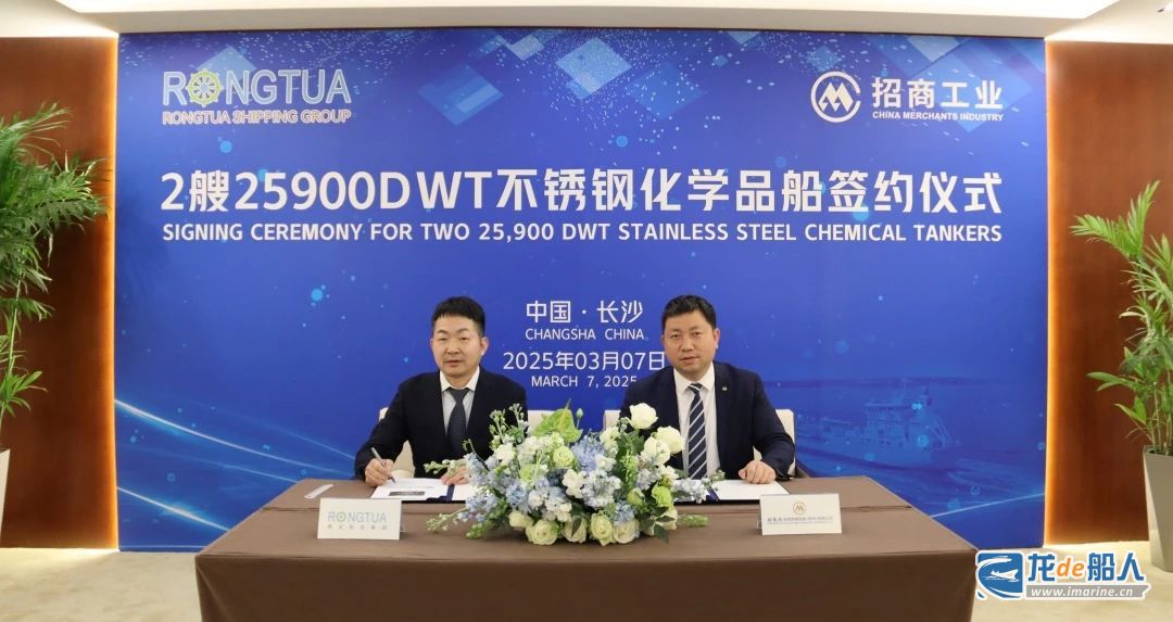 3月7日,招商局金陵鼎衡船舶(揚(yáng)州)有限公司與蓉達(dá)航運(yùn)集團(tuán)正式簽署2艘2.59萬噸級(jí)不銹鋼化學(xué)品船造船合同。